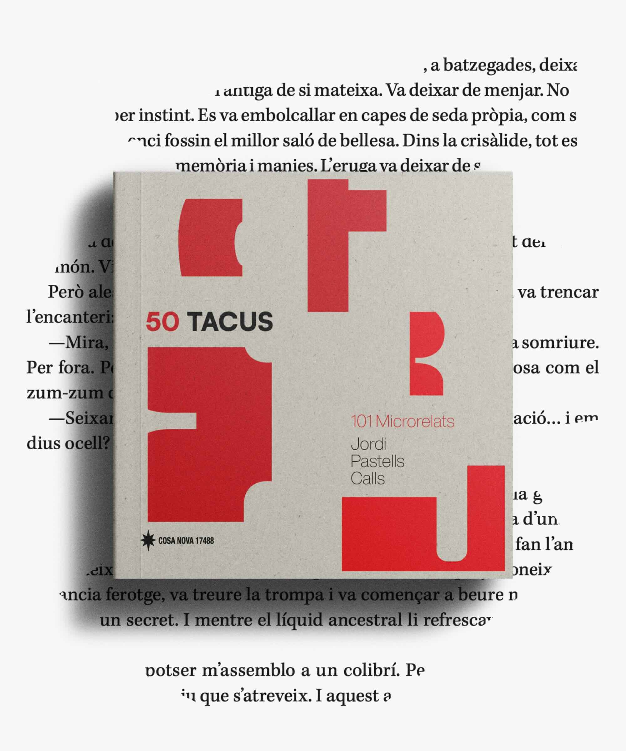 50 Tacus reuneix 101 microrelats de Jordi Pastells Calls que exploren, entre l’humor, la ironia i la melangia, la memòria, la identitat i la vida quotidiana.